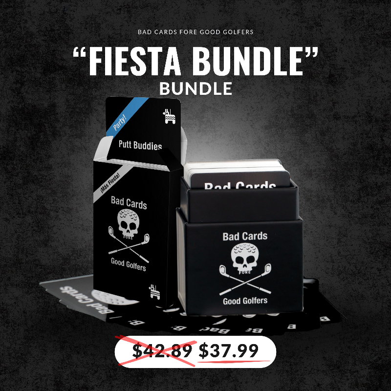 The Más Fiesta bundle comes with the Bad Cards Fore Good Golfers (Main Game) AND our "Más Fiesta" expansion pack which incudes 19 new Party! cards to mix into your master deck.